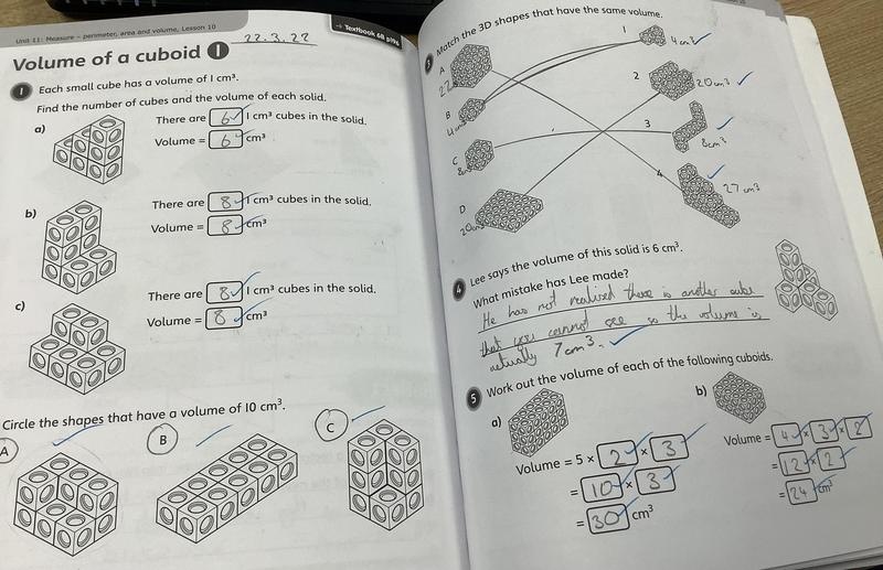 The photographs below demonstrate examples of mathematics work from Year 3 to Year 6. The work shown evidences how pictorial models are used within The Power Maths curriculum to support the understanding of the pupils. It also demonstrates the progression within a lesson, from practice of the skill being taught to application of the skill using worded and reasoning problems.